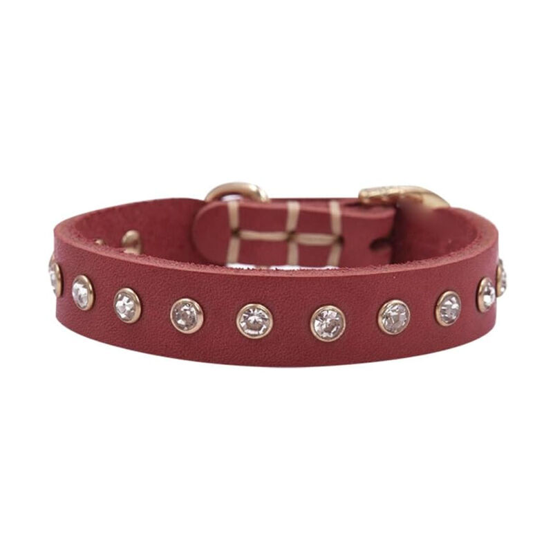 Dog Genuine leather Collar Bling Rhinestone Puppy Collar Adjustable Studded Dog Collar